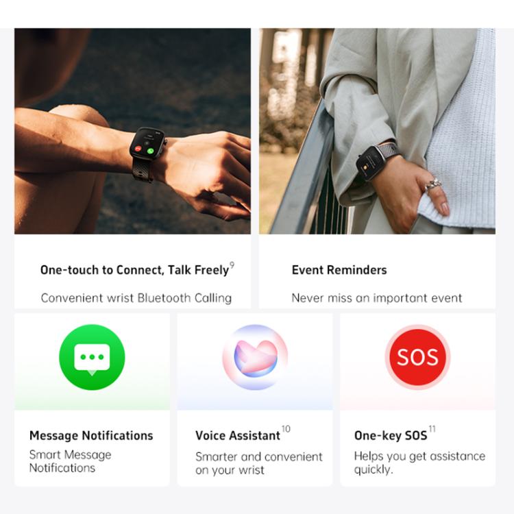 15. Functions: MAl Health Management, 100+ Sports Modes, Activities, Bluetooth Calling, One-tap Measure, Heart Rate, Stress, Blood Oxygen, Sleep monitoring, Breathe training, MET,Weather, Notifications, Music Control, Timer, Stopwatch, Calculator, Alarm, Flashlight, Find My Phone, etc.