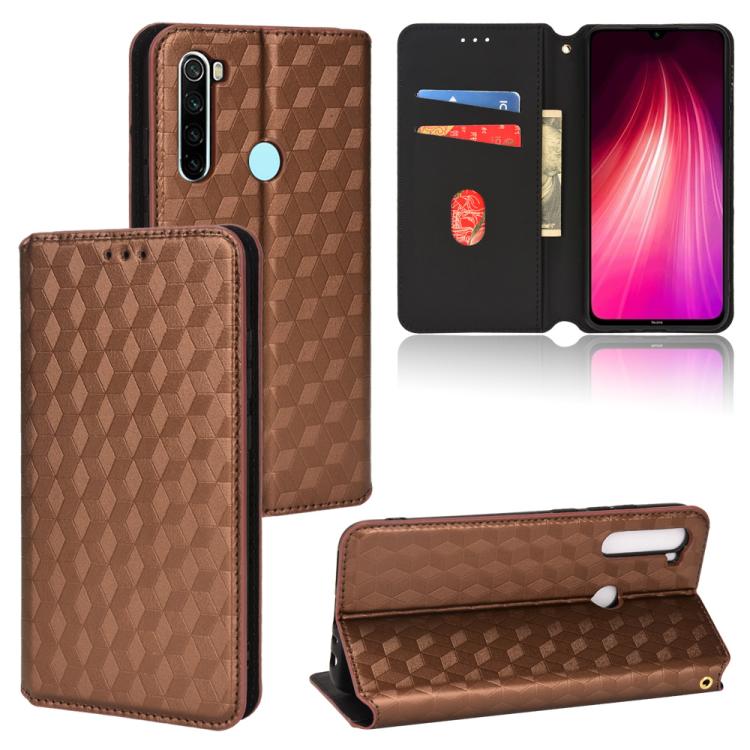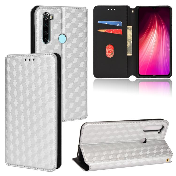 Cubic Grid Texture Flip Leather Phone Case, For Redmi Note 8 2021