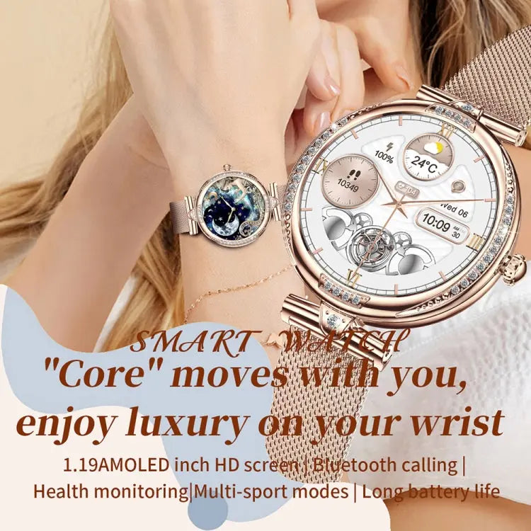 NX17 Pro 1,19 Zoll AMOLED-Bildschirm, Smart Watch mit Stahlarmband, unterstützt Gesundheitsüberwachung/Bluetooth-Anrufe, Stahlarmband