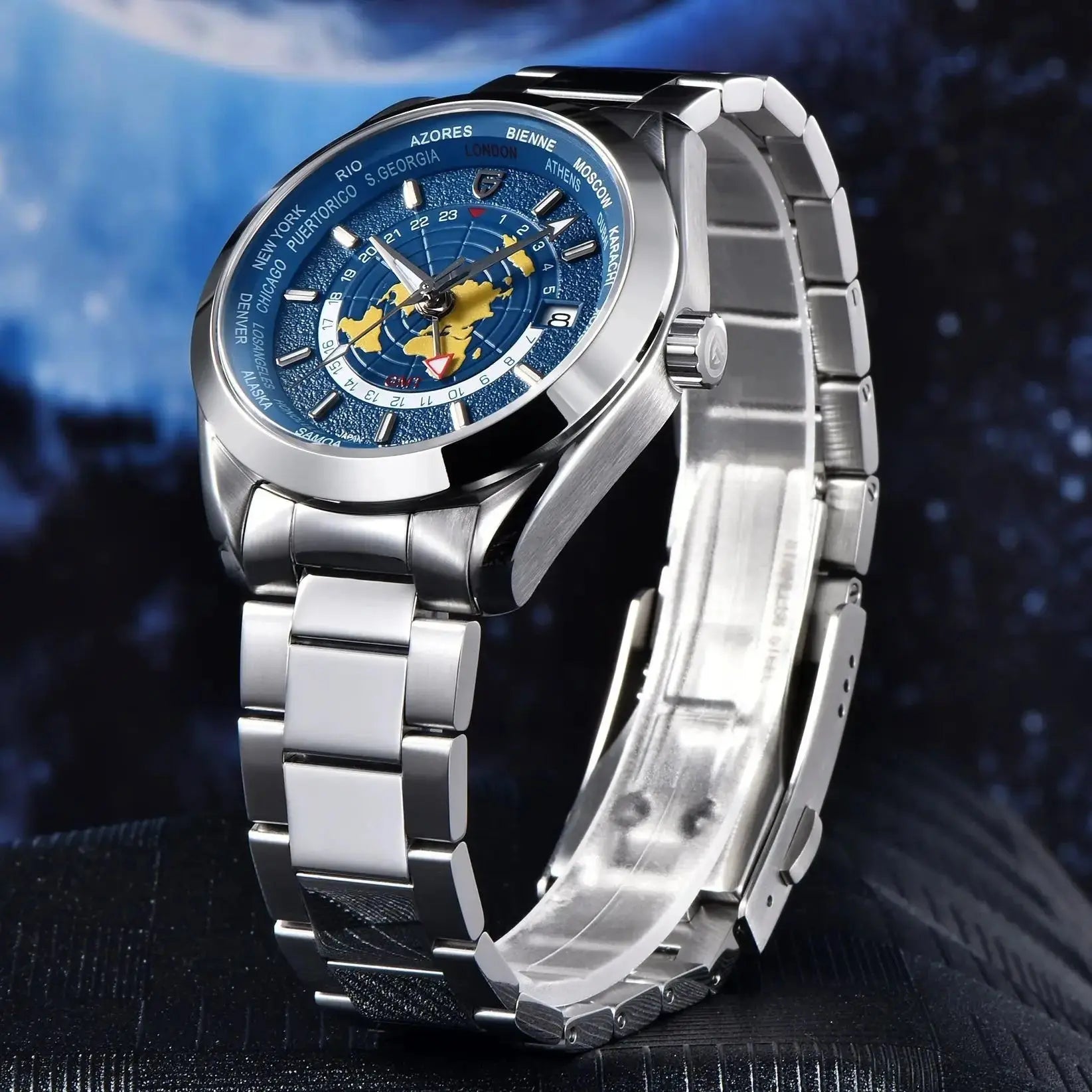 Multifunktionale mechanische GMT-Uhr für Herren mit zwei Zeitzonen, leuchtend, wasserdicht