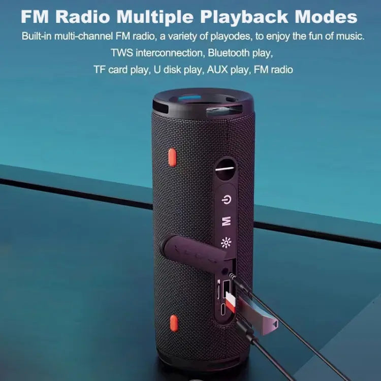 10. Support FM, TF card input, U disk input, 3.5mm audio input