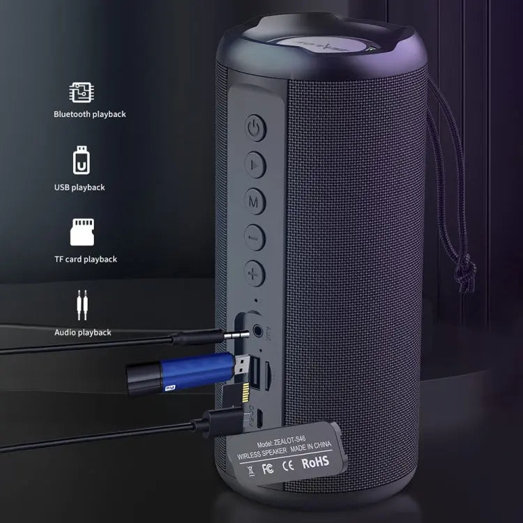 Zealot S46 TWS Portable Wireless Bluetooth Speaker with Colorful Light