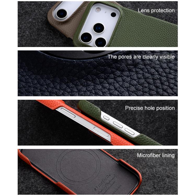 melkco Litchi Texture Magnetic Half Coverage Genuine Leather Phone Case, For iPhone 14 Pro, For iPhone 14 Pro Max