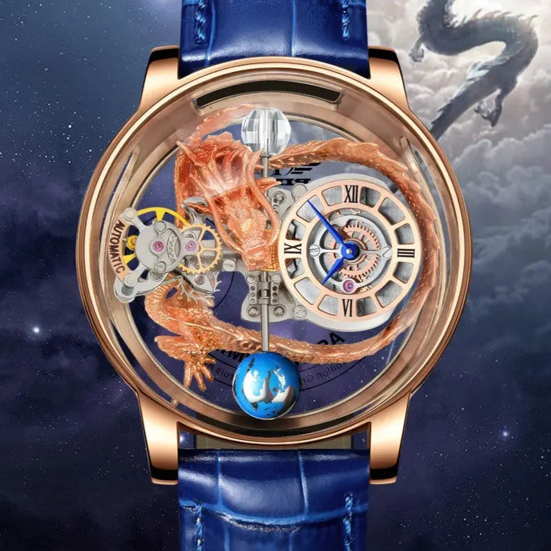 Color: rose gold shell Blue Ribbon [Panlong], Silver Case Black Belt [Panlong series], Rose Black Belt [chasing Dragon], rose Blue Ribbon [chasing Dragon], silver black belt [chasing Dragon]]