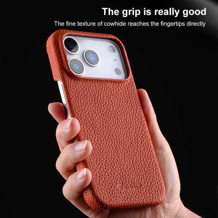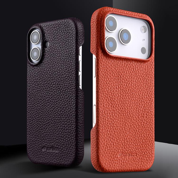 melkco Litchi Texture Magnetic Half Coverage Genuine Leather Phone Case, For iPhone 17, For iPhone Air, For iPhone 16 Pro Max