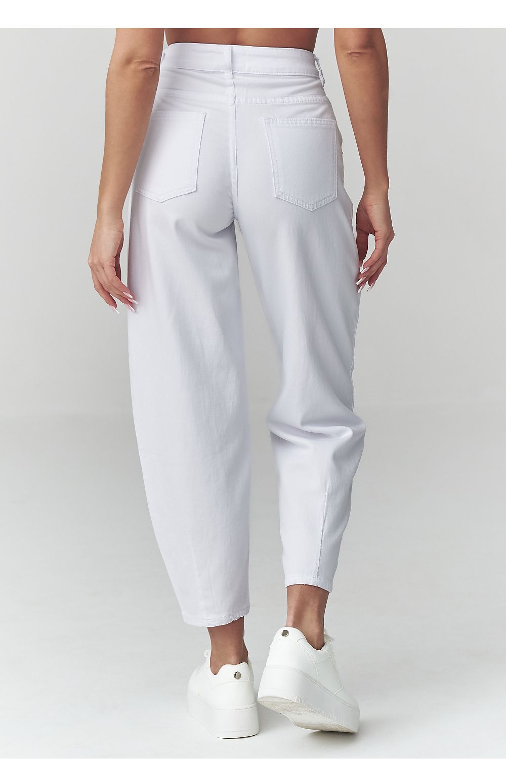 Bet on timeless comfort and relaxation! Mom fit jeans with a high waist are a must-have for every woman who loves fashionable yet comfortable outfits. The slightly tapered leg pairs perfectly with sneakers, trainers, or ankle boots. These pants look great both with a t-shirt and a biker jacket, as well as with an elegant shirt, perfect for everyday wear, work, and meetings with friends. The model is made of soft, thin denim with a breathable structure. Made in Italy.