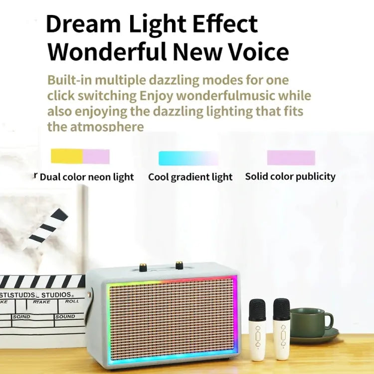 Leather Colorful Light Effect Karaoke Audio Retro Outdoor Bluetooth Speaker, Dual-microphone, Single Speaker